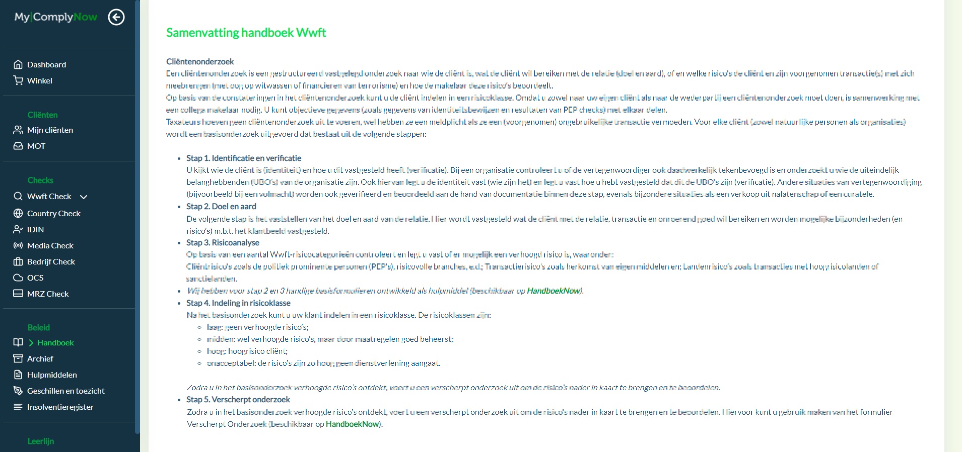 Het ComplyNow Wwft handboek heeft twee belangrijke functies: